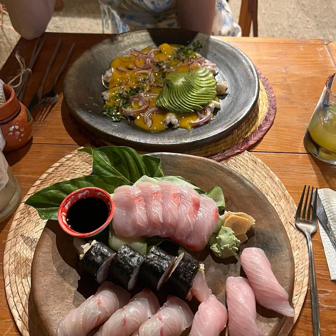 El ambiente de este restaurante se vende por sí solo al verlo, pero una vez que pruebas la comida, sabes que lo tiene todo. Las mesas de madera y las sillas tejidas de colores claros están rodeadas de plantas y árboles tropicales, con lámparas de estilo costero que cuelgan sobre ellas. Este restaurante se centra en el pescado fresco y los cócteles de vanguardia. Su selección de pescados abarca desde un plato de sushi del chef (imprescindible) hasta otros platos ligeros como el aguachile negro, el sashimi con leche de tigre y los platillos de pulpo marinado. También hay una carta vegetariana con tempuras doradas y esponjosas.
